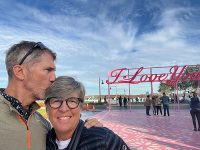 Visiting Washington D.C. and our friends Rodger & Sue - The last time we had seen these two was probably at our wedding, 27 years ago! They have an exquisite house just outside of D.C. which they graciously opened to us. Rodger with years on the hill and doing environmental work and Sue with years in the Labor department are absolutely chock-a-block full of interesting stories, thoughtful questions, and informed opinions. Conversations with them could (and did) make hours seem like minutes! In addition, they have years and years of amazing art from all over the world (especially from Rodger's long time working on conservation in Africa), but the one piece that Randy loved the most was three stuffed animal pigeons under a glass coffee table. Click on that picture to expand it and see if you agree. :-) We also spent an afternoon at the Torpedo Factory Art Center in Old Town Alexandria (at Sue's suggestion) and we especially liked the message artfully installed on the waterfront in front of the building. :-)
