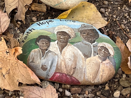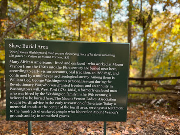 Visiting Mount Vernon . . . a decent tour + one great moment at the enslaved peoples memorial: Another half day we spent at Mt Vernon is an amazing building that thousands of people tour each year. They do a good job of explaining the interesting parts of the building, but are still working on the historical picture of Washington as a person. The enslaved people on whom the estate was built and run play an important part of the story, but the picture presented is still very concrete. ("In this room, Washington did X and the servants were responsible for Y.") The social, emotional, and moral dimensions of the man and the enslaved people who ran the estate didn't come across as well as they could have. It wasn't until we wandered into the enslaved people's graveyard that their story came to life. When these unmarked graves were discovered in 1929 the Mount Vernon Ladies Association put in a marker, but the site received little other attention until it was, well, rediscovered in 1982 and the more recent memorial was built a year later. Unfortunately, it still doesn't seem positioned as an essential part of the Mt Vernon experience and took a little work to find. When we stumbled on it though it was the clear highlight of the tour. First, the monument, designed by Howard students, is simple and beautiful. Second, there are rectangles laid out on the ground with simple string nailed into the ground (pictures 2, 3, & 4), symbolizing the individual gravesites. Most poignantly though, an elementary school class had visited and left painted rocks, like makeshift headstones for the graves and for the many many enslaved people buried there. Those images are what we'll remember the most from Mt. Vernon.
