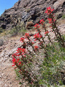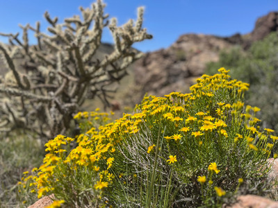Yet especially this spring, the desert is far from dreary. The blues, reds, oranges, yellows, and purples are EVERYWHERE. In fact, in many places, the desert is downright lush. I'm sure the middle of July will feel much more "post-apocalyptic" when the temps are above 110°, but for now the desert felt to us like a spectacular "Welcome Home!"